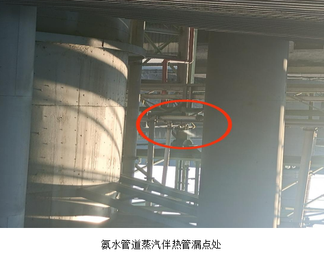 7月26日早上,丙班白班當班脫硫巡檢正常巡檢到一期塔區(qū)時,發(fā)現(xiàn)位于高空橋架位置,尿素水解器氨氣輸送管道伴熱管閥欄處存在漏白色霧狀氣體,巡檢初步判斷為蒸汽管道腐蝕泄漏,隨即向生產(chǎn)班班長和檢修班班長匯報該情況。