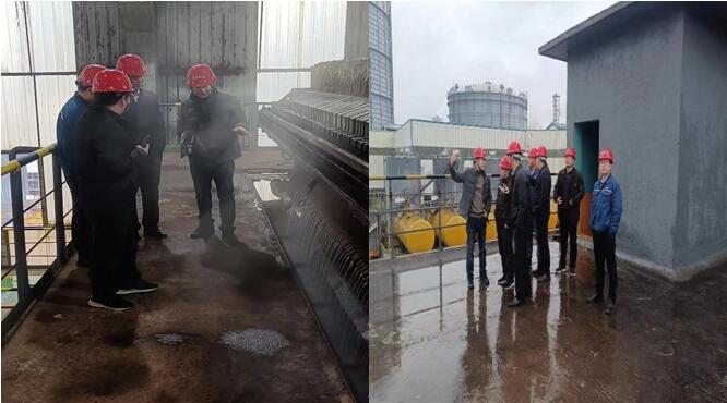 相關方領導新區(qū)水處理反應釜、壓濾機、吹氨塔現(xiàn)場參觀交流